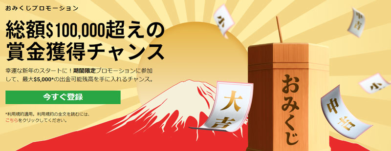 期間限定プロモーションに参加して、最大$5,000の出金可能残高を手に入れるチャンス!
