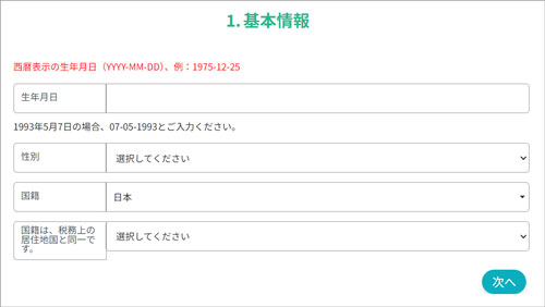 | 1、名前やメールアドレス・パスワードを登録しメール認証を行う 2、基本情報や取引経験などの質問に回答する 3、本人確認書類のアップデート |